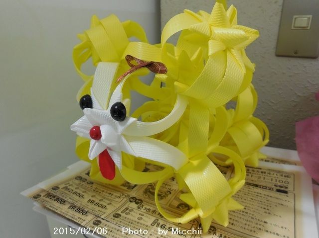 義兄が姑に連絡して、姑作の縮緬細工の獅子舞(ヤクルトの空き瓶で作る)を貰ってきて出品して何とかなったらしい